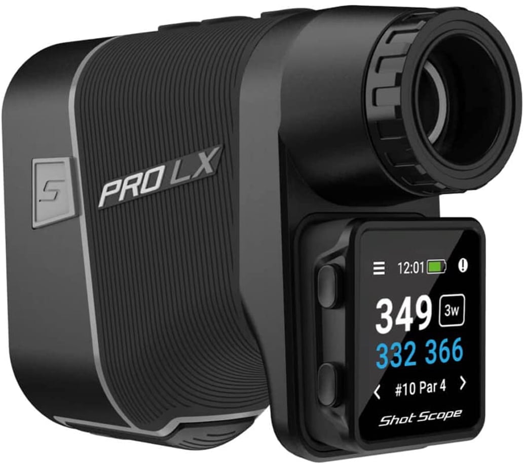 Laser Rangefinder with GPS Distances and Performance Tracking. The PRO LX+ gives golfers the best of both worlds – a fast, accurate rangefinder and a powerful GPS with performance tracking. GPS yardages to the F/M/B of every green and hazards combined with the exact pin location, the PRO LX+ gives you everything you need to form the best strategy for every shot. Additionally the PRO LX+ comes with 16 tracking tags, providing the golfer with performance tracking and statistics on their game – without the need for a phone or watch on the course.